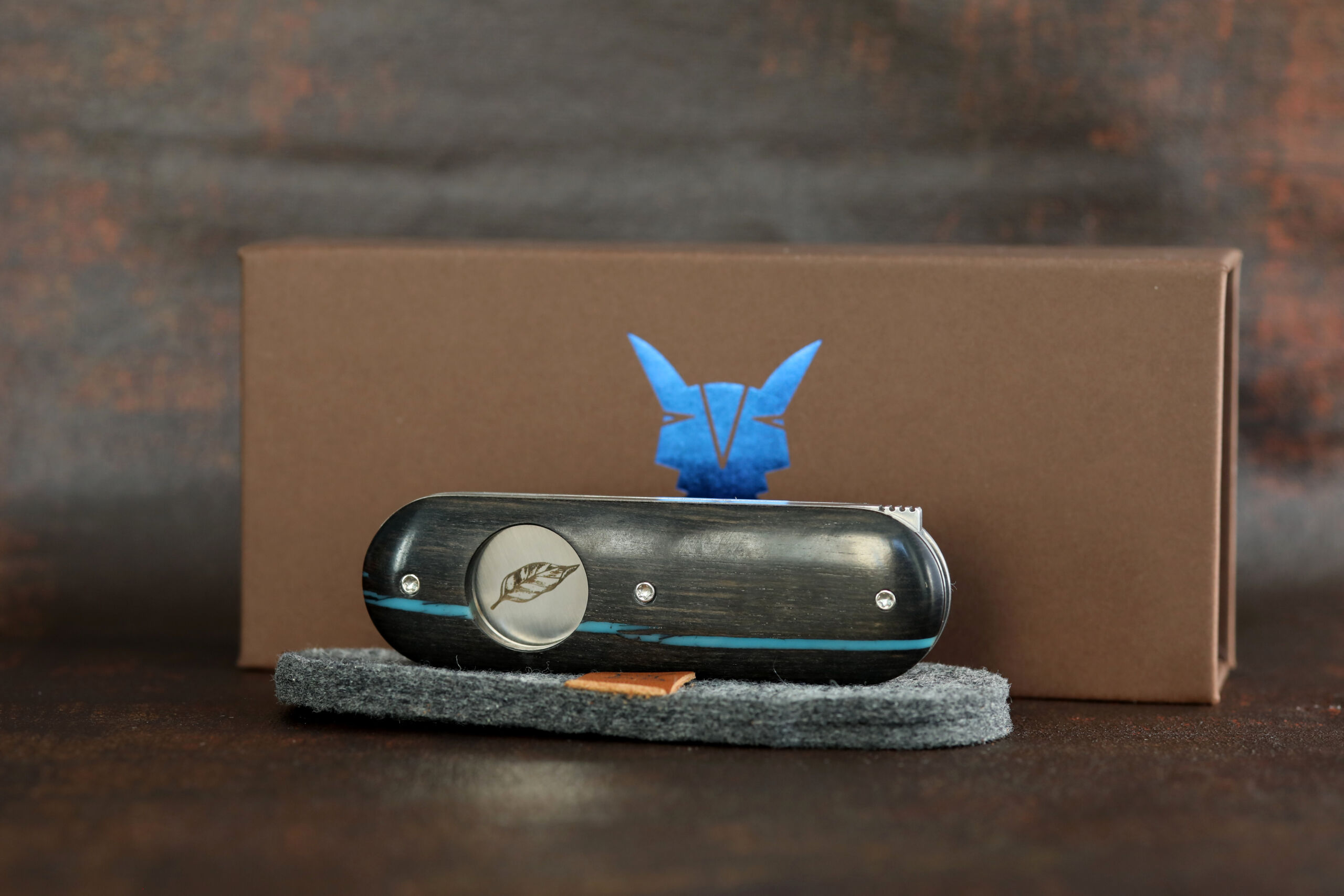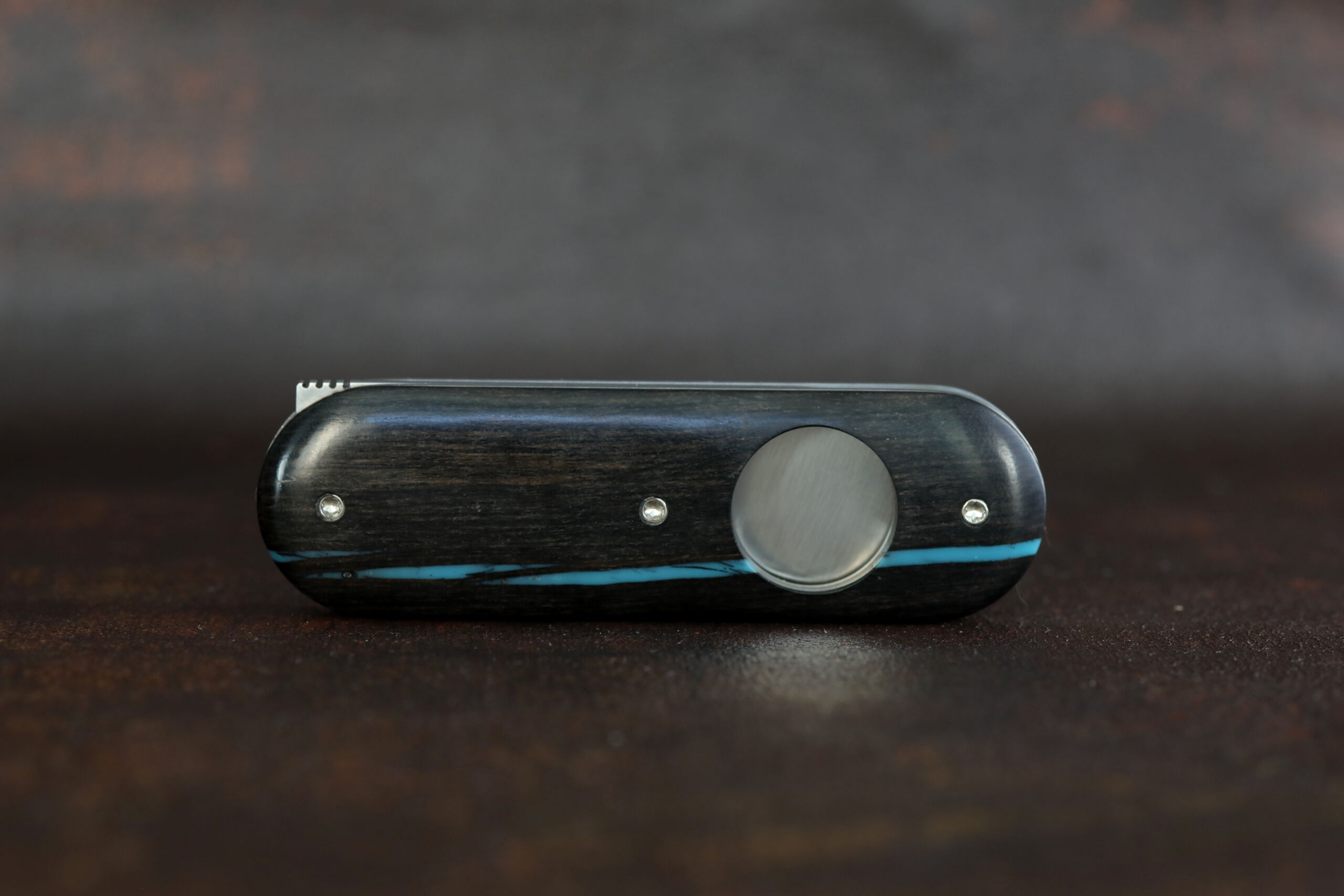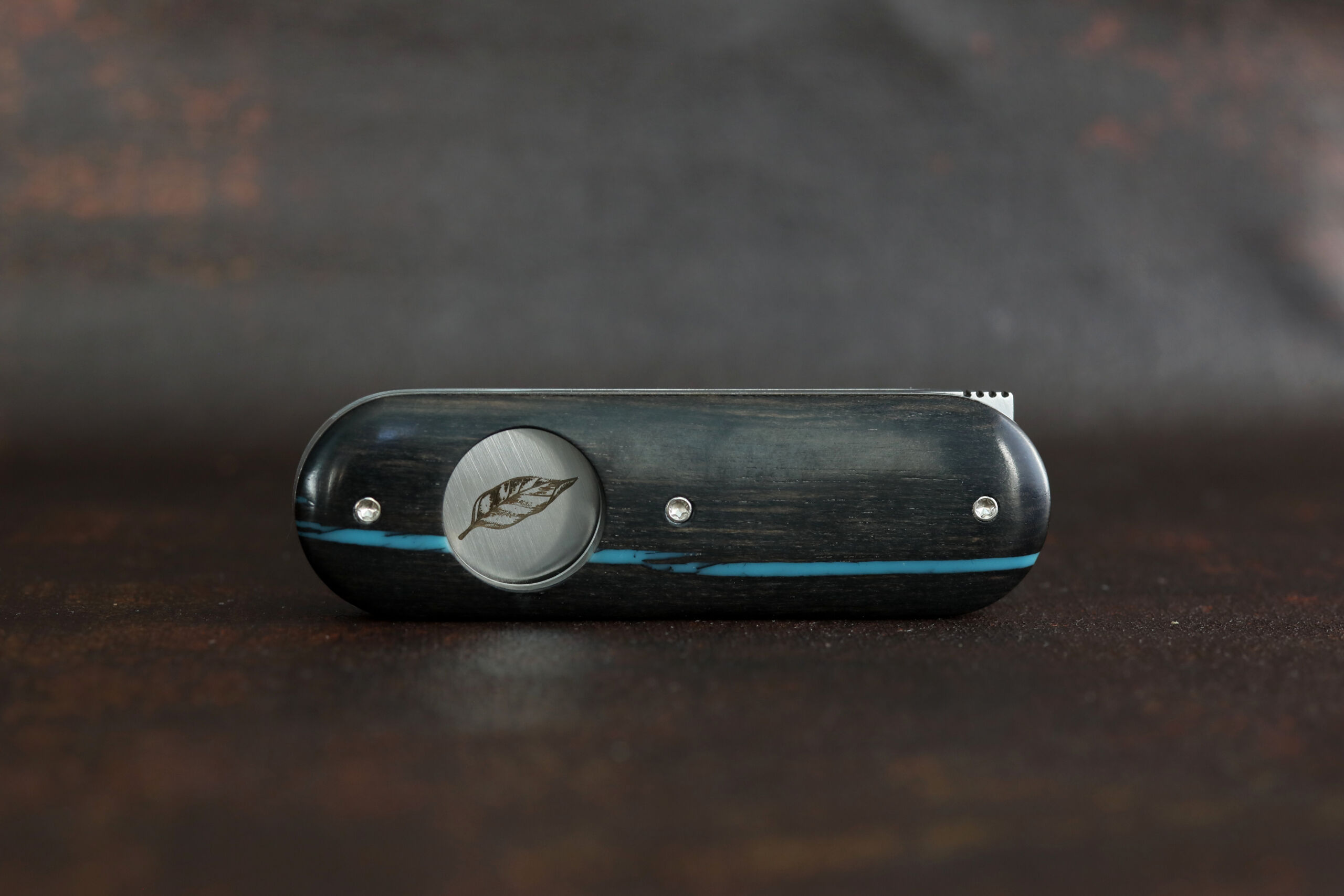 Ce coupe-cigare hybride ébène & résine bleue a été pensé pour les amateurs de beaux objets et de pièces artisanales haut de gamme.