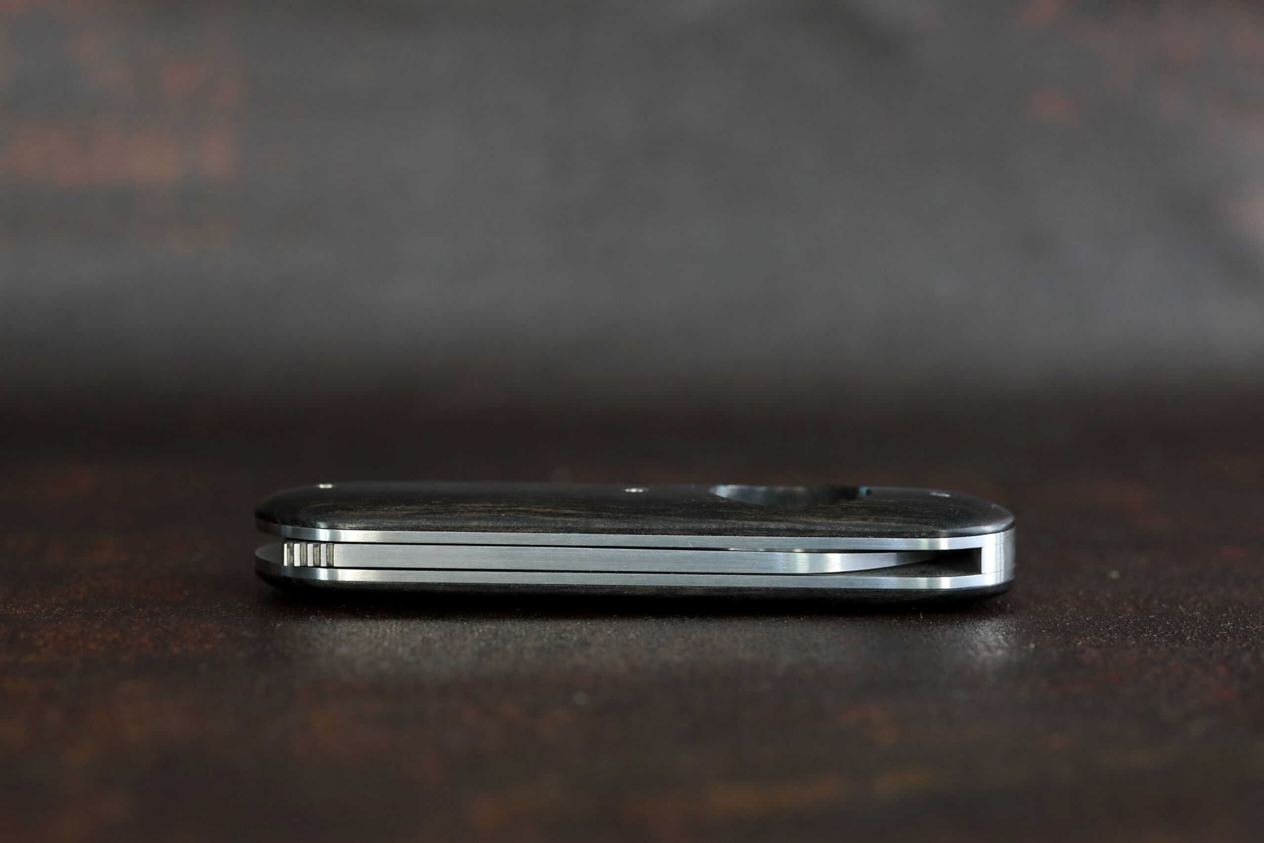 Le contraste bois noir profond / résine bleue translucide offre un design spectaculaire, parfaitement équilibré en main.