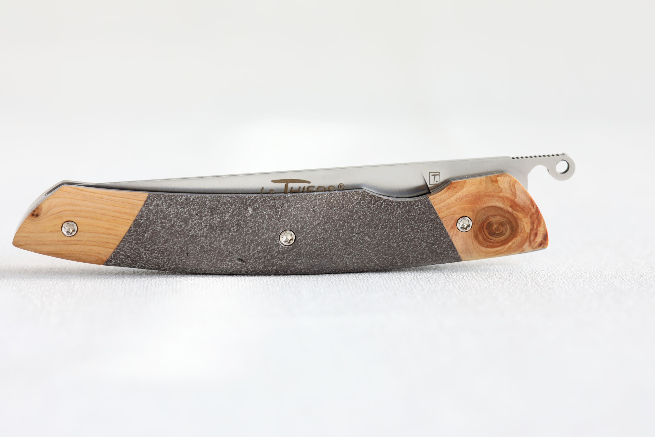 Alliant l’authenticité du savoir-faire coutelier français et l’élégance des matériaux naturels, ce couteau Le Thiers® Liner Lock est une pièce d’exception fabriquée artisanalement dans notre atelier à Thiers, capitale mondiale de la coutellerie.